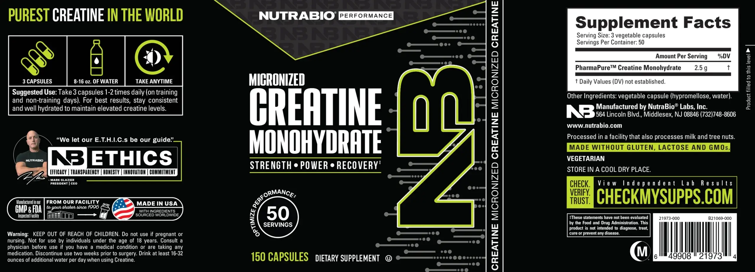 ¡Experimente la más pura Creatina Monohidratada en Capsulas con NutraBio!
